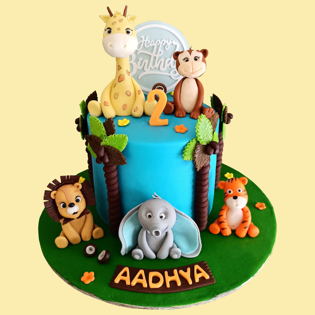 Theme Cake based on jungle animals. Choose from our list of delicious signature flavors.